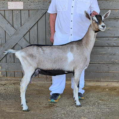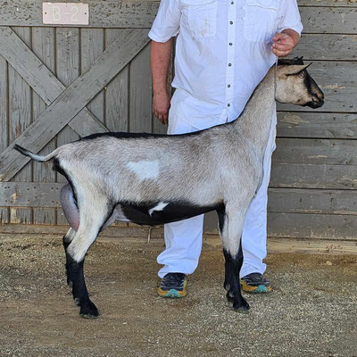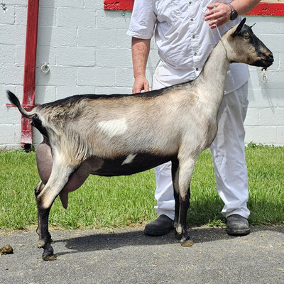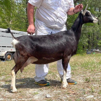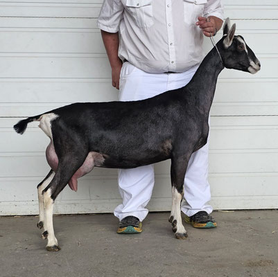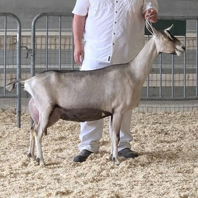 with a nearly ideal udder for her age. She nearly made the trip to Nationals, but with limited room in the trailer, and an emphasis on the Saanens, she didn't quite make it on the rig and we left