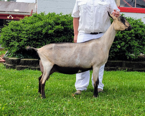 Jezebel has known she was special since the day she was born. Our last Suzie daughter, we had high hopes for her from the start, and she's certainly lived up to them! Jezebel is one of those does that excels in all areas of the scorecard. She's an incredibly balanced doe, with correct GA, and a beautifully attached mammary system.